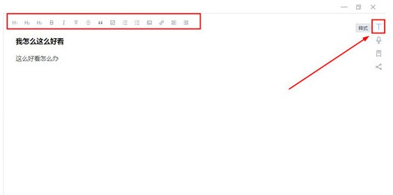 2、选中想要调节的文字,点击上方红框标注内开头的三个选项,这些选项就可以帮助用户调节字体大小,从左往右分别是标题一、标题二以及标题三,每个选项可以调节的字体大小都有所不用,除此之外右边这两个选项则可以调节字体的粗细与斜体,如下图所示: