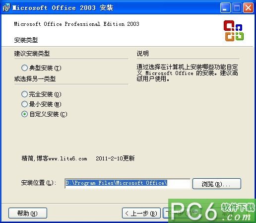 选择你想要安装的目录和是不是自定义安装,(如果你想选其中的一两个进行安装就可以点自定义安装)