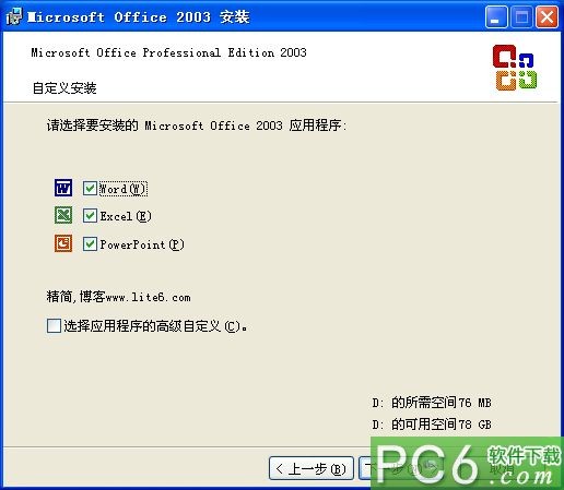 默认安装word,excel,powerpoin,你也可以选择想要装的内容。点下一步
