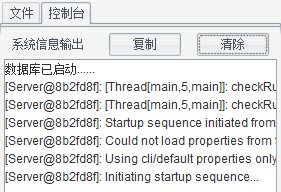 点击菜单“本地应用”->“启动示例数据库”,左侧的控制台会输出“数据库已启动”信息,表示demo数据源所需连接的HSQL数据库已启动。