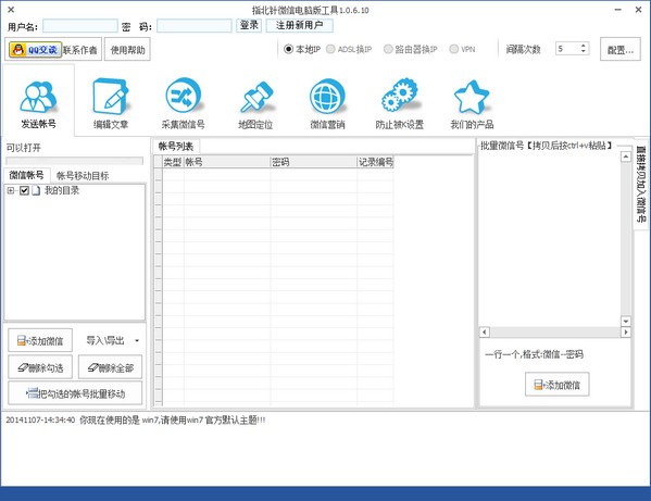 能同时处理多个帐号,支持微信帐号,QQ帐号,手机帐号