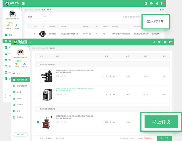 采供双方可在线订货销货,降低采销成本,提升录单接单效率