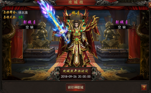 2、活动结束时,占领皇宫的帮会获得胜利,所有在神歌城皇宫中的帮会成员都可获得奖励