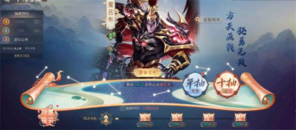 完成每日的任务,即可获得活动道具,并进行转盘抽奖,有机会获得枭雄将印、神魔武将等稀有道具。