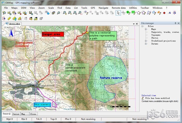 OkMap无疑是许多户外爱好者最喜欢的软件。有了你的Garmin或麦哲伦GPS设备在你的手中,无论你是航行,登山,徒步旅行,攀岩,野餐,郊游,海上钓鱼.他们可以通过OkMap迅速找到自己的方位,并制定出最佳的旅行路线。使用Garmin或Magellan GPS设备(支持Nmea协议),OkMap可以通过GpsBabel上传或下载数据。