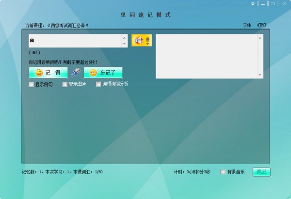 奇迹英语背单词是一款非常优秀的英语学习软件,它彻底颠覆了传统记忆模式,从信息科学与心理学着手,通过软件来管理人脑的海量记忆信息,模拟人脑吸收知识的动态过程,持续监测每一学习者大脑的记忆状态,电脑与人脑之间的信息交流形成谐振态,从而达到人脑自身工作无法达到的境界。
