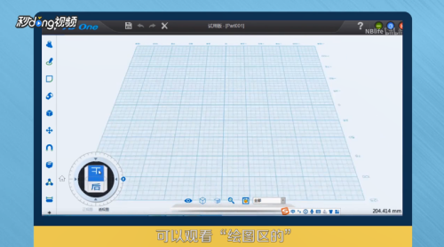 最中间的“网格”就是“绘图区”,左下方图标是“视图控制柄”,“显示工具栏”。