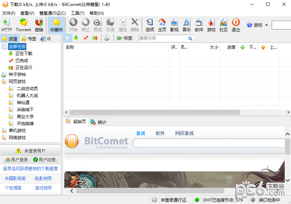 bitcomet是一种基于bittorrent协议的有效的免费p2p文件共享软件(俗称bt下载客户端),支持多任务处理(multitasking)和选择文件下载。磁盘缓存,减少对硬盘的损坏。只有一个端口,手动防火墙和nat/router设置非常方便。windows xp允许自动设置支持upnp的nat和xp防火墙,具有多种禁止扫描功能、限速功能和自然方便的使用界面。