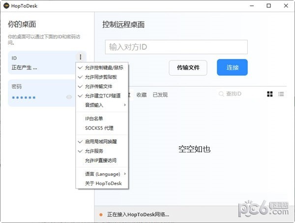 屏幕共享、远程控制、文件传输和实时聊天是 HopToDesk 提供的基本功能。支持直接 IP 访问、IP 白名单和 SOCKS5 代理连接等其他功能。请联系我们以请求新功能。